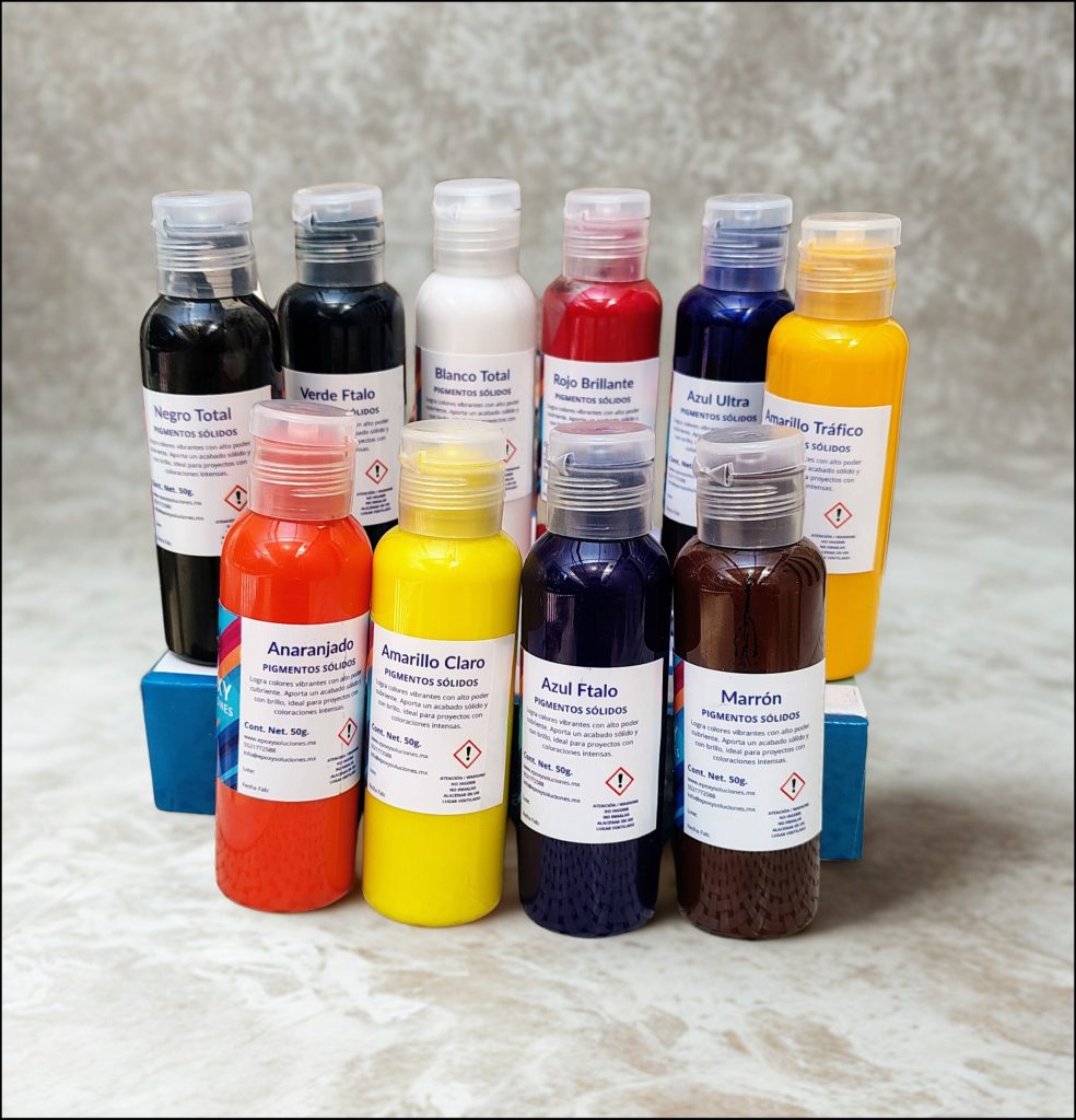 Pastas altamente concentradas ideales para lograr acabados sólidos y/o efectos marmoleados formulados especialmente para trabajar con resina epoxica bajos o altos espesores sin alterar su formulación química.